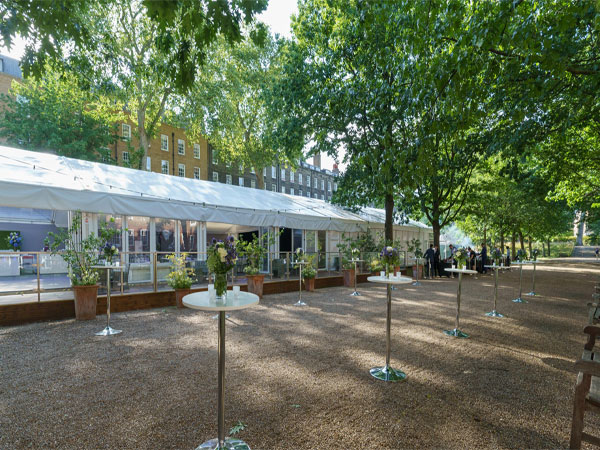 During June and July, a grand and elegant custom-built marquee will be placed in The Walks. A magnificent interior emulates the splendour of the rich history, offering a charismatic space with a clean and crisp design.The clear roof of the reception area creates a charming setting under the beautifully lit trees for guests to enjoy a refreshing welcome drink, before indulging in delicious food and dancing the night away